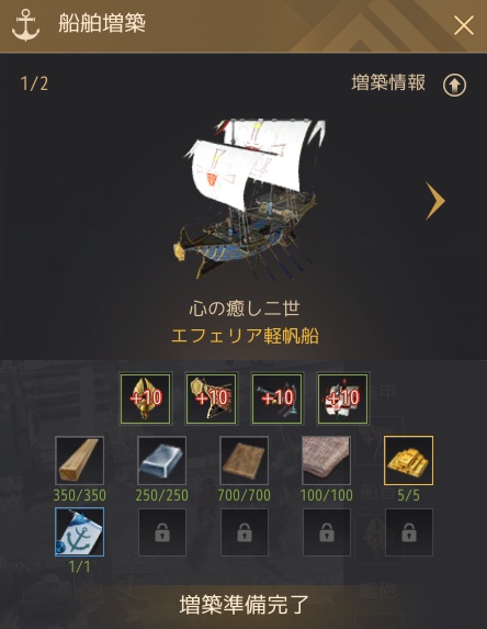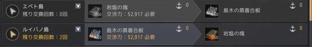 物々交換で集めないといけないのもあります。ここからの造船は本気で進めないと厳しいですね。