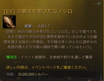 定期的に黒い砂漠で遊んでいます。夏のテルミアンイベントでも釣りイベントありましたが、今回秋のイベントでも釣りイベント発生中です。