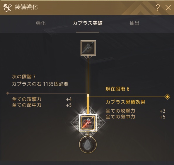 ちょこちょこ集めていたカプラスの石、2025年秋の釣りイベントで500Mほど資金ができたので取引所で購入(1個=2Mぐらい)し1段階上げました