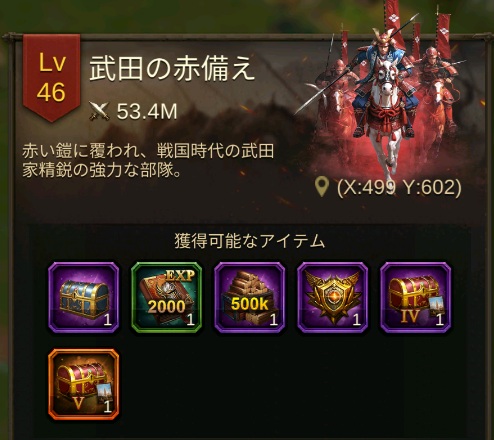 「武田の赤備え」というNPCが追加されています。LV14騎兵かな?