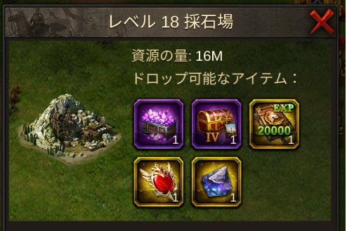 LV17資源地は基本13.6M、LV18は基本16Mです。